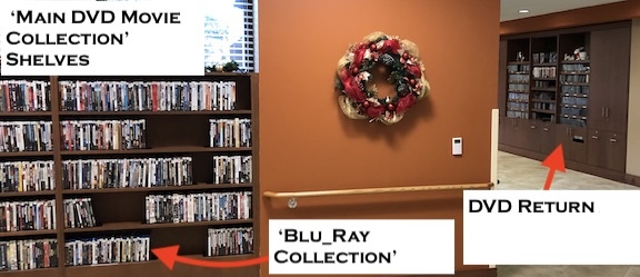 To donate movies (DVD or BluRay) please drop them in the deposit slot located in the CD music area or contact Barbara Folkeson (Resident Directory) or Bennie Blansett (Resident Directory) |